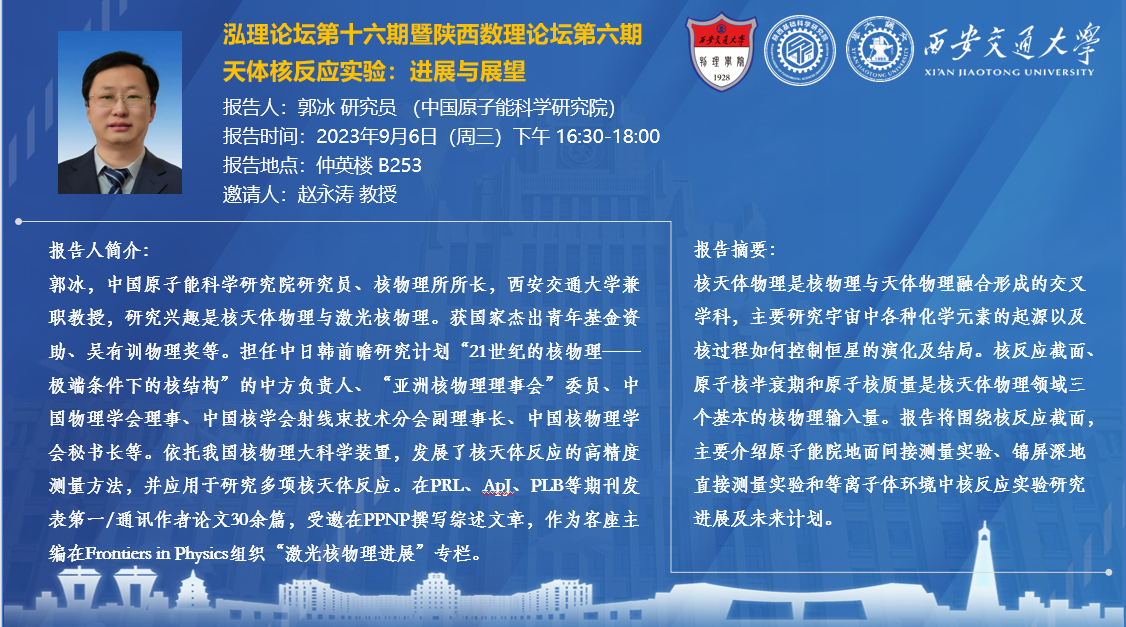 【泓理论坛第十六期暨陕西数理论坛第六期】——天体核反应实验:进展与展望