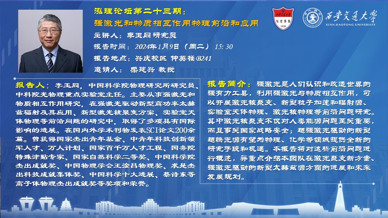 【泓理论坛第二十三期】——强激光和物质相互作用物理前沿和应用