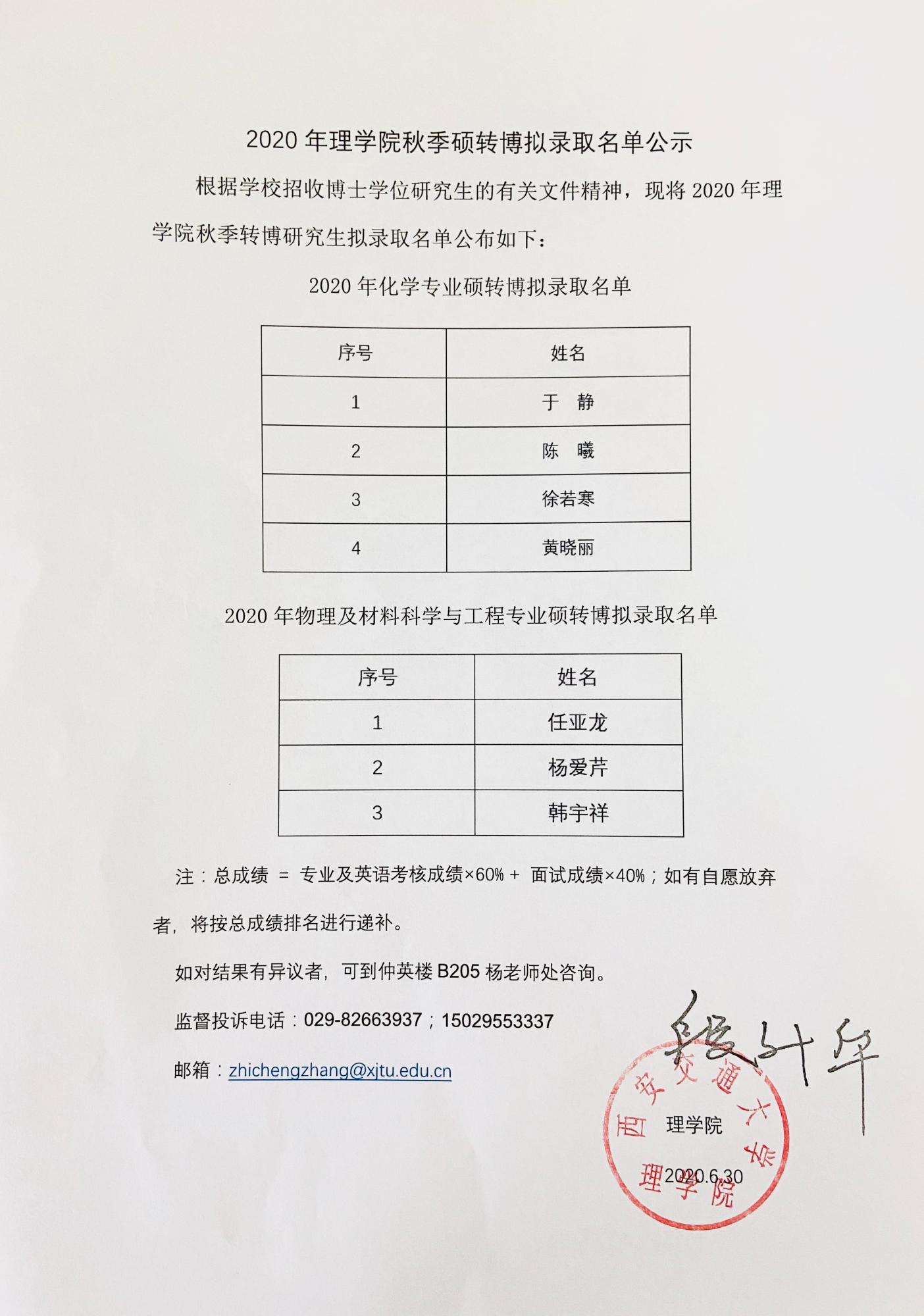 关于公布2020年物理试验班二次选拔拟录取名单的通知