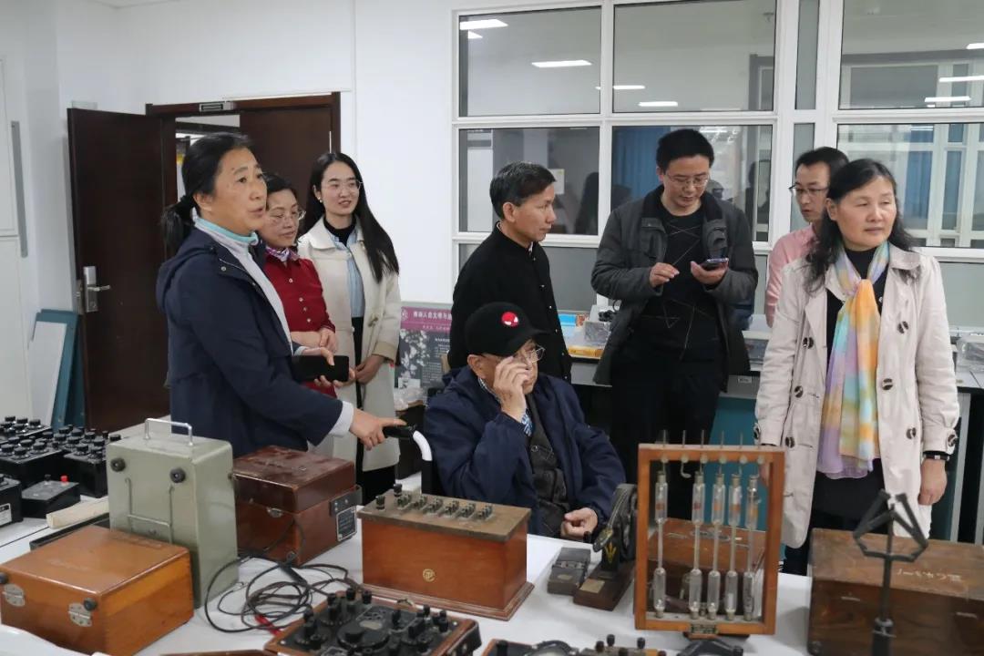 和实验中心的发展,指出基础物理实验涉及面广、知识结构庞杂,要弄清楚每个实验原理和实验中小问题非常困难,这就对各位实验老师提出了更高的要求,老师们要清楚的认识到自身的不足,敢于面对自身不足、敢于向学生说不知道,才能在备课行课过程中避免常识性的错误。李普选老师基于自己授课的经验提出可以将演示实验融入到基础物理实验教学中,物理实验课程更重要的是要培养学生的物理概念、物理过程和物理思想,演示实验往往能给同学们带来最直观的物理思想和物理过程。程向明老师以课程思政为切入点,强调课程思政在物理实验教学中的重要性,提出离退休教师可以将自己知道的交大的历史、物理系的历史、实验中心的历史以及各位老师自己的历史整理出来,形成文字,帮助青年教师做好历史的传承、讲好历史故事。王红理教授结合自己入职交大以来的工作经历,回顾了实验中心的发展,指出实验中心新一代青年教师一方面能够很好的继承和践行老一辈教师身上的西迁精神,更有志于书写和发扬西迁精神新内涵。最后,三位离退休老师参观了实验室,并向青年教师讲述了实验室和实验仪器的历史故事。