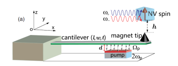 NV center电子自旋和纳米机械振子耦合示意图