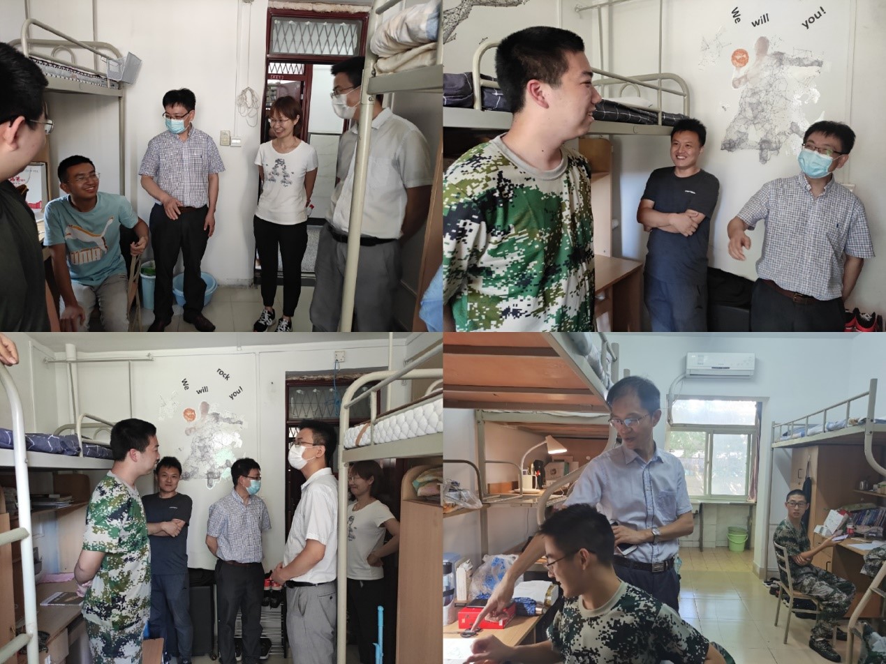 领导老师与新生亲切交流,“天气还热要注意”“同学们在寝室一定要好好相处,有问题要及时解决”等。高宏院长发现学生寝室上铺楼梯有松动时立刻表示,“要尽快反映一下,尽快更换,不能留下安全隐患。” 高宏院长非常关心同学们的学习生活条件,并表示学院一定尽力给大家创造最好的学习生活环境。他希望同学们能一直带着对物理学科的喜爱、热爱,在老师们的悉心教导,能不负初心、学有所成!