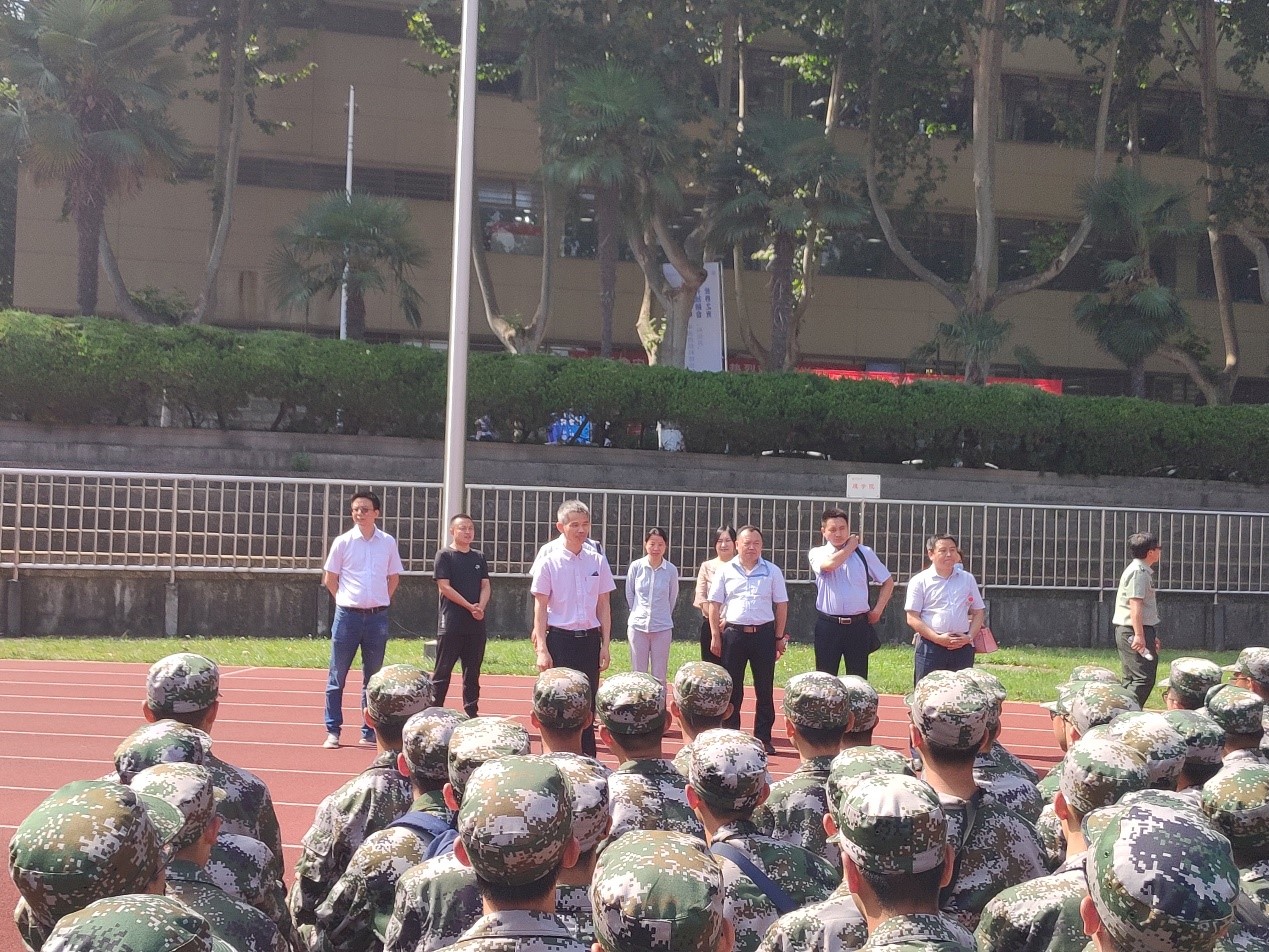 本科生新生以及军训教官、指导员等,送来军训慰问品为新生鼓励加油。杨小渭书记在讲话中鼓励同学们养成规律作息的好习惯,叮嘱同学遇到学习生活上的困难要及时联系老师,希望同学们能不畏炎热天气,保持激昂精神状态,在军训中绽放青春光彩,书写大学生活新华章。