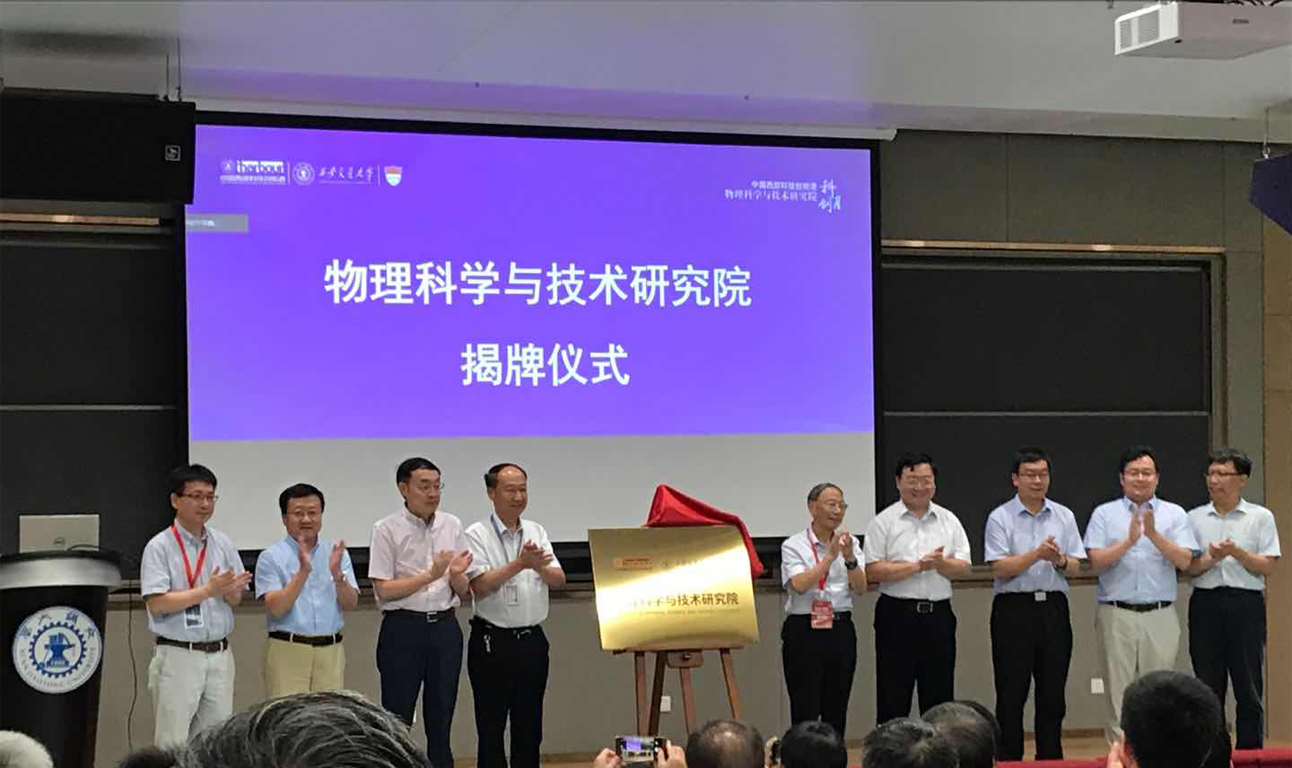 院士论坛暨“物理科学与技术研究院”揭牌仪式在创新港涵英楼举行,南京大学都有为院士、北京大学谢心澄院士、西北工业大学魏炳波院士、中国科学院近代物理研究所赵红卫院士、西北有色金属研究院张平祥院士,西安交通大学党委副书记、校党委常委赵昌昌以及各兄弟高校、科研院所的领导和嘉宾和与会师生共同见证“物理科学与技术研究院”成立揭牌仪式。高宏院长主持。
