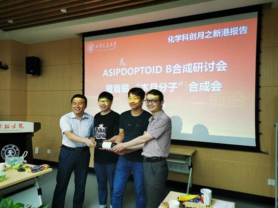 7月4日上午9点,创新港泓润楼2105会议室座无虚席,化学学院科创月——新港报告在这里拉开帷幕。本次会议的主题为:ASPDOPTOID B合成研讨会暨首届“本月分子”合成研讨会。