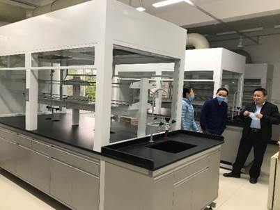 3月28日下午,我校实践教学中心主任王小华、理学院党委副书记张志成、副院长段新华及化学学科主任丁书江、副主任张雯老师一行来到理学院化学实验教学中心(雁塔校区)对医学化学实验教学平台建设及实验室内部改造情况进行视察指导。化学实验教学中心白艳红主任向各位领导及与会人员汇报了中心阶段性建设规划及建设成果,展示了雁塔校区医学化学实验室及实验平台建设改造后的新面貌,并向学校相关部门对此次雁塔校区化学实验教学中心建设及改造的大力支持表示感谢!