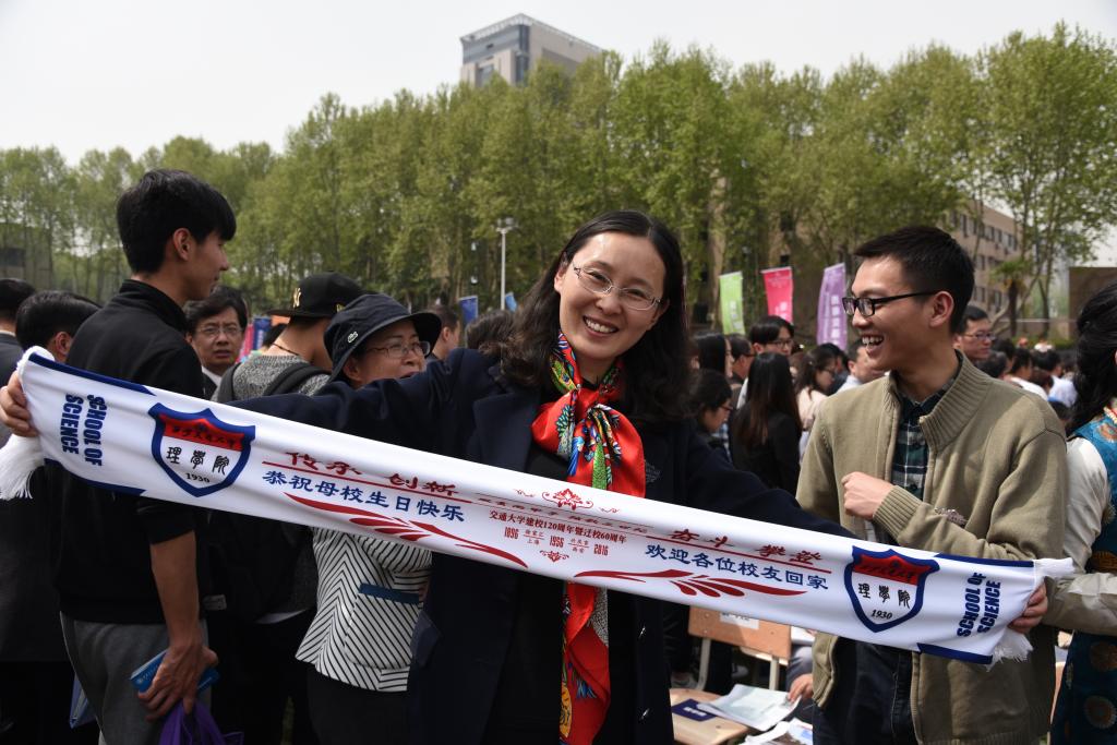 为了烘托节日气氛,为西安交通大学120周年华诞献礼,理学院精心准备了校庆纪念围巾,印有校庆纪念大会主题“传承、创新、奋斗、攀登”,“恭祝母校生日快乐,欢迎各位校友回家”,校庆标志等,寓意 “一带一路”国家重大战略,寓意母校繁荣昌盛,纪念围巾由上海厂家制作,通过在上海的校友接力传递,仅用3天就转到了理学院学生手中,也暗合西迁寓意。同时也代表了理学院广大师生心声,为校庆献礼。