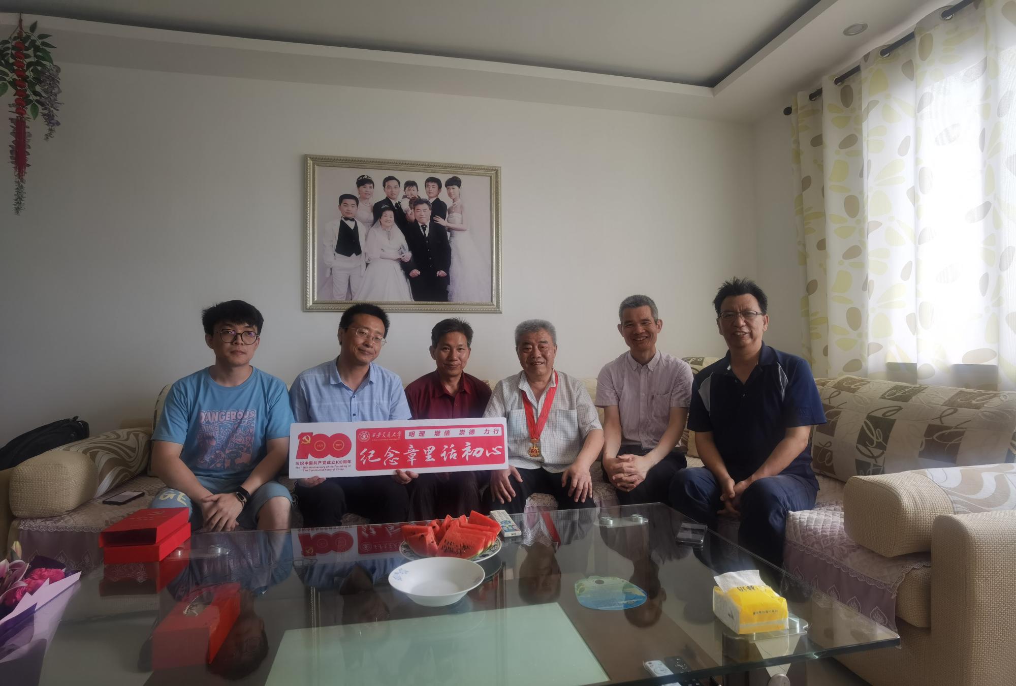 在老同志家里,举行了简朴而庄重的纪念章颁发仪式,大家亲切交谈,老同志分享了自己入党初心、成长奋斗的经历,感人至深,催人奋进。