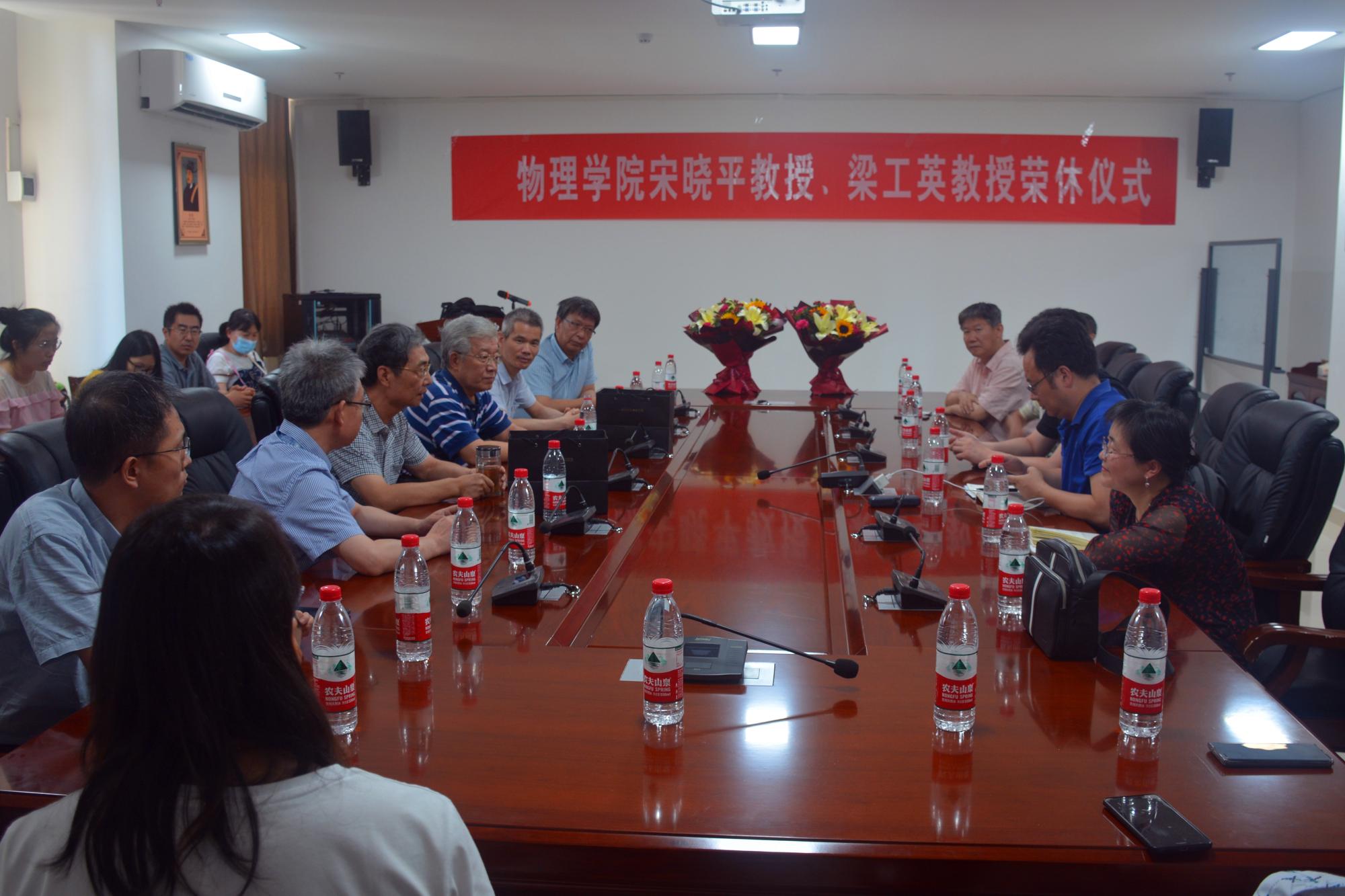 为退休教授宋晓平老师、梁工英老师举行荣休欢送会。学院党政领导、教师代表参加会议。副院长杨志懋主持仪式。