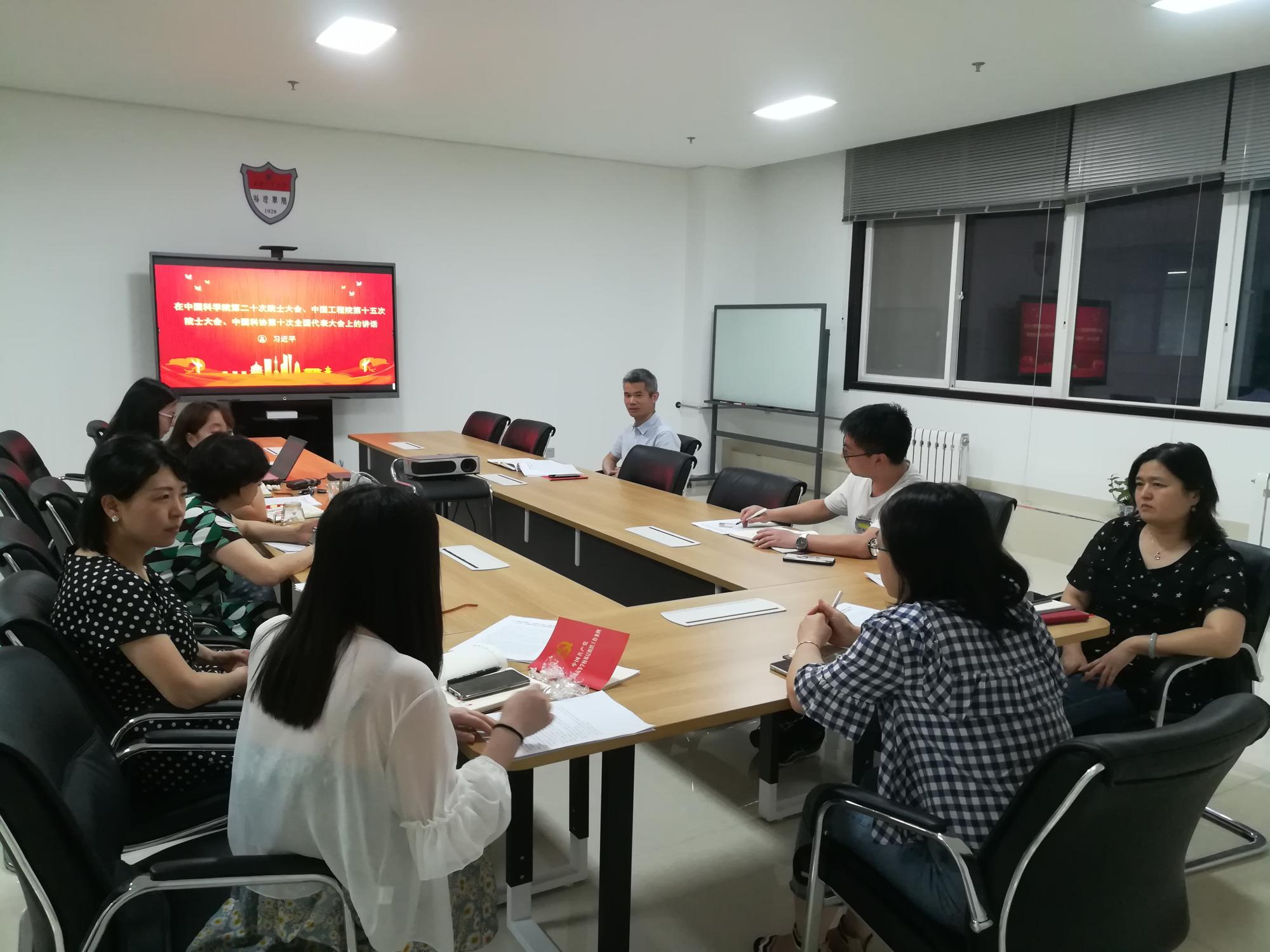 会上,刘钰哲同志带领大家学习习近平总书记在两院院士大会、中国科协第十次全国代表大会上的重要讲话精神;会议还研讨学习了新修订的《中华人民共和国教育法》、校党委《关于在全校开展作风建设年的通知》等法规文件精神。