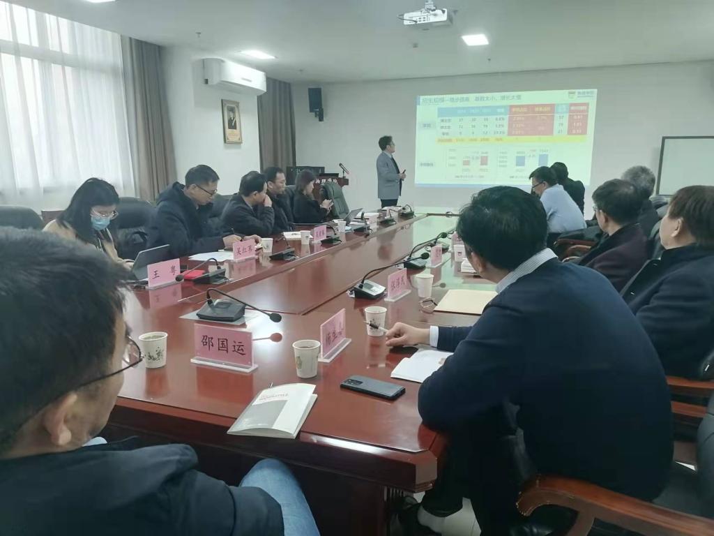赵永涛围绕学院学科建设情况、研究生招生规模及生源质量情况、研究生培养协同育人项目改革成效与研究生培养成果进行了汇报,重点介绍了学院研究生招生指标分配办法等学院政策制度建设情况,指出学院人才培养面临的困难,并提出加强基础学科人才培养是历史责任,也是时代呼唤,学院将全力提升研究生培养质量发展,促进学院学科发展。与会人员围绕精准选拔人才,重构研究生培养方案,提升研究生培养质量等开展了充分研讨,提出了政策建议。