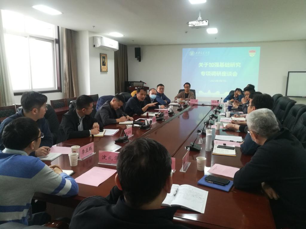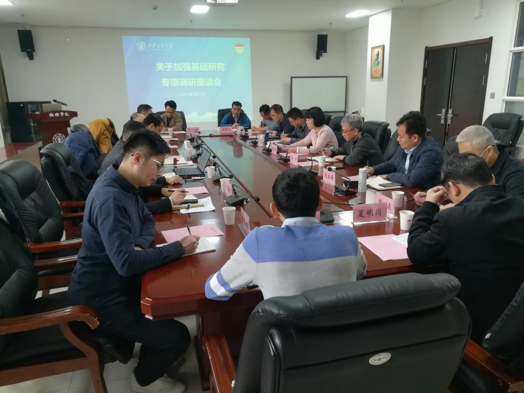 赵永涛副院长汇报了加强有组织科研,聚力进行原创性、引领性科技攻关的举措;李蓬勃副院长汇报超常规推进拔尖创新人才培养的举措;张沛副书记汇报了推进教研一体、产教融合的具体举措。国家级人才杨森教授从学院发展历史的角度剖析物理学科的学科发展规律和人才培养规律,提出在绩效和资源分配方面要充分考虑基础学科的特点和规律,高度重视基础学科人才引进与人才培养工作。物质所所长杨生春建议加强对基础学科大设备大平台建设的投入;应用物理系主任夏明岗提出要重视一流本科专业建设;青年人才侯高垒、王少伟、沈礼华分享了兄弟高校加强基础学科建设的经验和做法,提出强化拔尖班学生理工融合培养模式、进行长周期考核等建议。