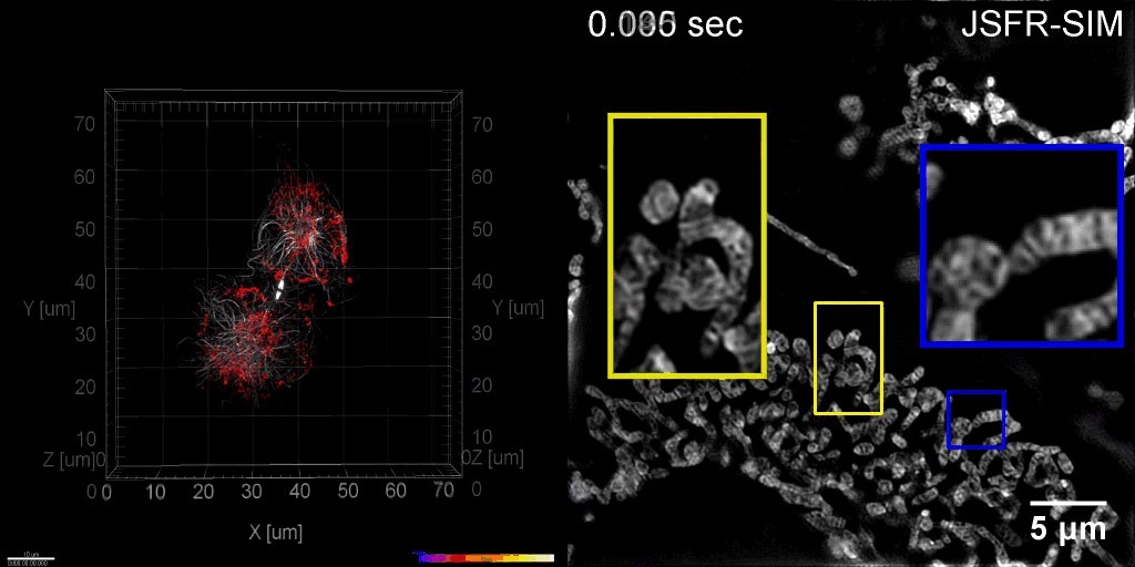 图1:JSFR-SIM可实时显示微管和线粒体动态