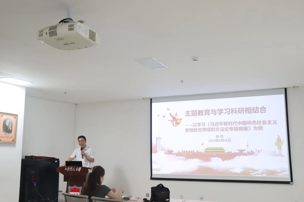 党委副书记张沛教授为全体党员和入党积极分子讲授“主题教育与学习科研相结合”主题党课。