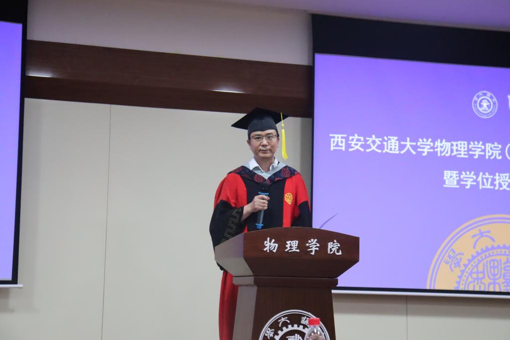 本科毕业生代表,省级优秀学生干部、校级优秀学生标兵获得者材物91班李才勇回忆大学生活的点点滴滴,表示在之后的生活中会一直铭记交大“精勤求学、敦笃励志、果毅力行、忠恕任事”的校训。研究生毕业生代表,省级优秀毕业生、校级优秀硕士生标兵获得者刘北辰分享了对交大深深的热爱与不舍,他鼓励同学们大胆尝试以找到自己擅长且喜欢的事业,在生活中劳逸结合以保持充沛的能量,时刻贴近前沿避免和社会信息脱节。最后他衷心祝愿同学们在自己认为正确且热爱的道路上继续奋力前进,实现自己的目标与理想!