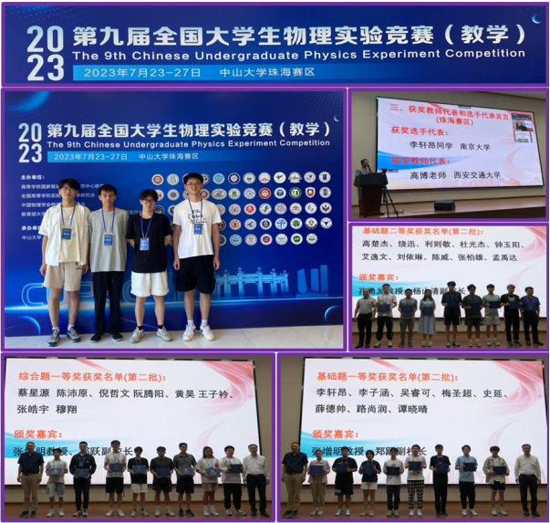 2023年7月23-27日,第九届全国大学生物理实验竞赛(教学)在中山大学举办,西安交通大学经过校赛两轮选拔与密集培训,派出的3支参赛队获得全国一等奖2项、全国二等奖1项,一等奖获奖类型达到了基础类和综合类全覆盖,实现了我校在综合类全国一等奖奖项上零的突破,获奖质量与数目取得历史新高,同时在所有参赛高校中表现突出。