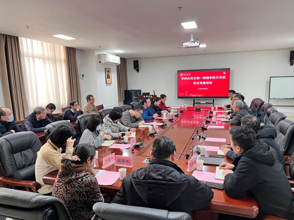 分党委联合开展组织生活,集体学习习近平总书记在中共中央举行纪念毛泽东同志诞辰130周年座谈会上的重要讲话精神,探讨物理学科评估、建设等工作,共同推动党建引领学科高质量发展。学科办主任陈雪峰,学科办副主任、党支部书记李英英,澳门巴黎人赌场