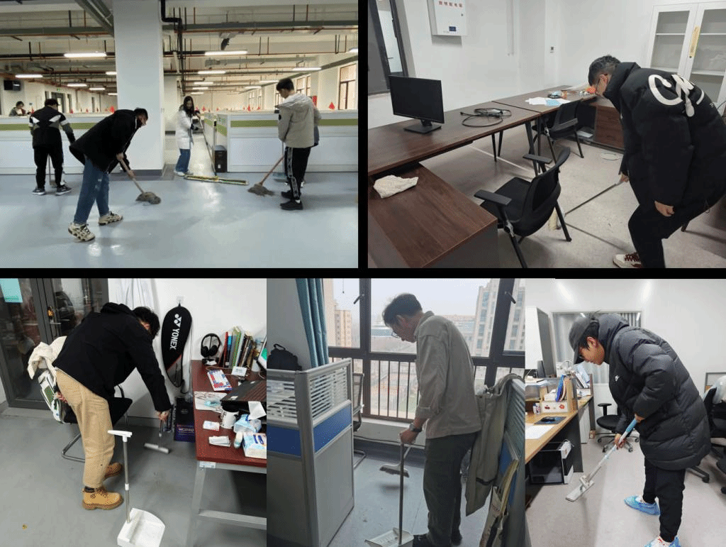 活动当日,博激光与理论党支部、博光学与天文党支部、博凝聚态物理党支部、硕2021级党支部、硕2023级第一党支部、硕2023级第一党支部、博2376团支部、博2263团支部、硕1198团支部、硕3219团支部、硕3220团支部、硕3221团支部、硕3222团支部分别组织党团支部同学在工位及实验室展开行动,携带扫帚、拖把等清洁工具,清理了工位和实验室周围的垃圾死角和地上的纸屑、塑料袋等杂物,用抹布擦拭了书桌以及重新整理了物品摆放位置,使得工位环境更加干净整洁。